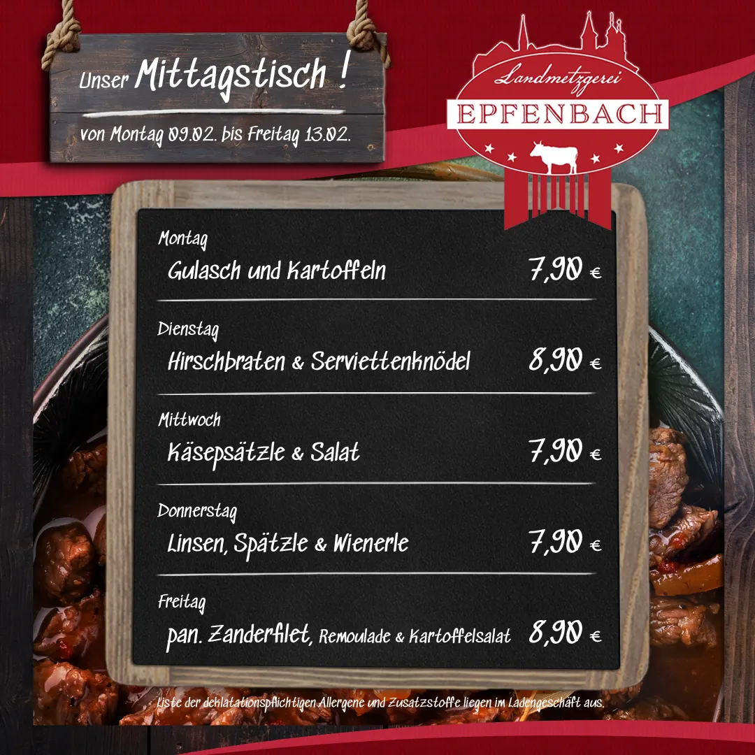 Unsere Wurst-Produkte beziehen wir, wie Ihnen bekannt ist, von der Metzgerei Bräunling, Sinsheim-Reihen.